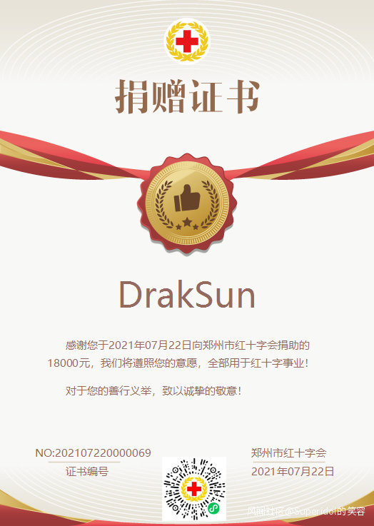不過這次捐贈證書上日期是7月22日,如果這次捐款是真的,説明孩子王DrakSun是又重新捐了18000,而不是發出來證明,一開始就是捐的18000。因為之前的捐款記錄信息很明確,100元是7月21日捐的。