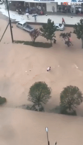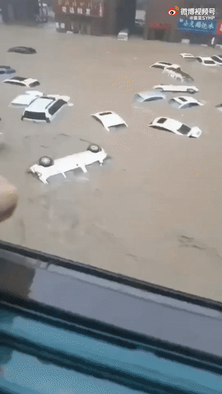 城市內澇極其嚴重,車子幾乎被直接淹沒。