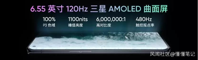 屏幕是真我 GT 大師探索版的亮點,120Hz三星AMOLED柔性曲面屏,支持120Hz屏幕刷新率及480Hz觸控採樣率,擁有100% P3 色域顯示、10240 級亮度調節,色彩表現力豐富、耗能更低。屏幕採用柔性屏材質與行業最領先的COP封裝,極窄邊框,視覺效果出色。