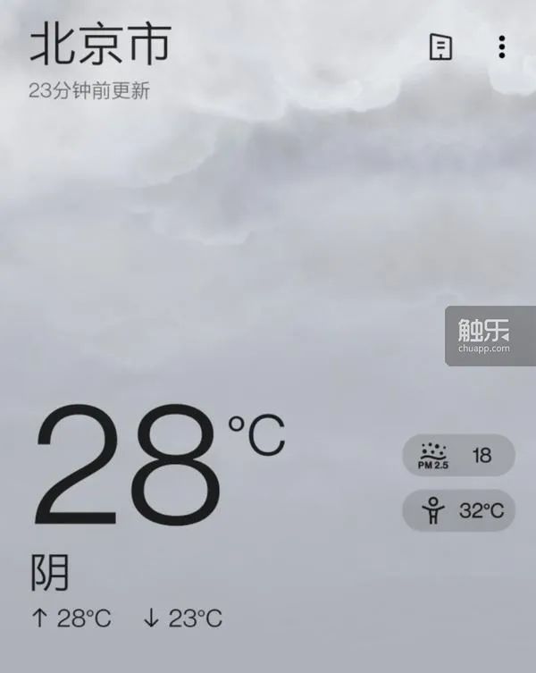 北京今天不會下雨,上班前,我特意拿手機看了一眼,天氣預報的頁面上畫着很多雲,旁邊的文字顯示是“陰”,最近的一場雨預計在明日凌晨,窗外看不見藍天,但仍是一片明亮。我想了想,沒有帶傘就出了門。