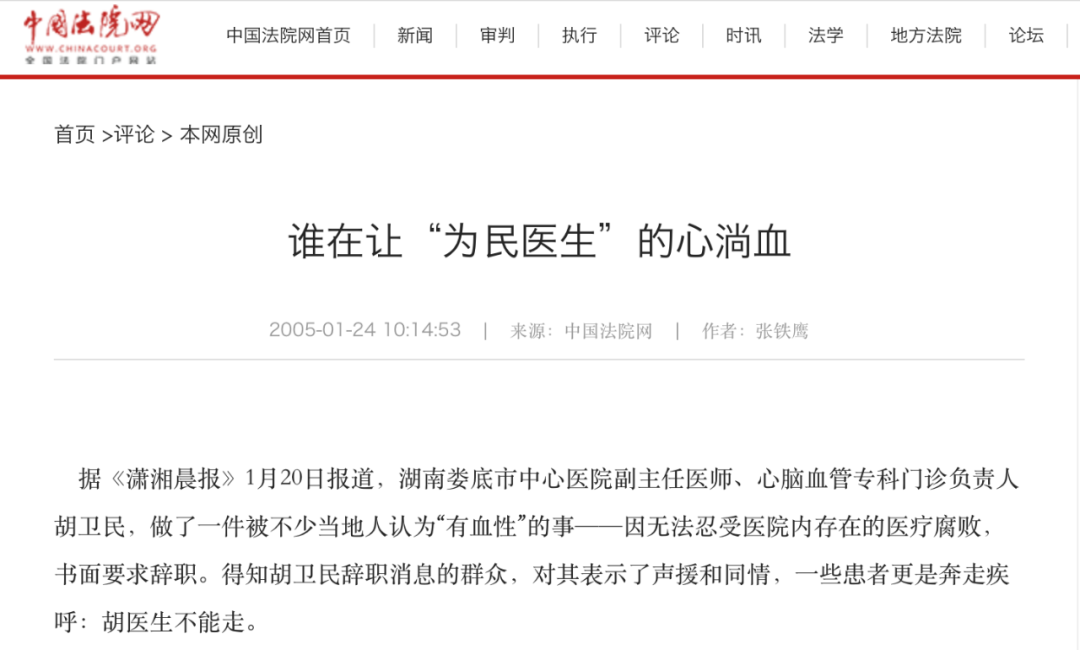 沒有被恐嚇到的胡衞民,又跑到市政協會議上,呼籲整治醫德醫風,還向市裏有關方面反映醫院存在的問題。