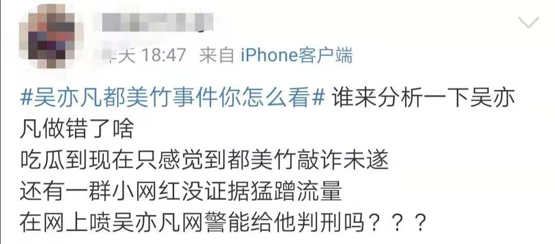 Ta們認為在這件事中並沒有能給吳亦凡定罪的證據,而在沒有證據之前,吳亦凡的所作所為只是個人作風的問題。