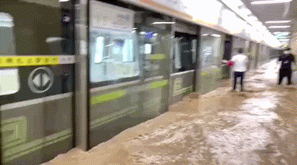 洪水衝進地鐵站,湧入車廂內,水位已經漫過肩膀……