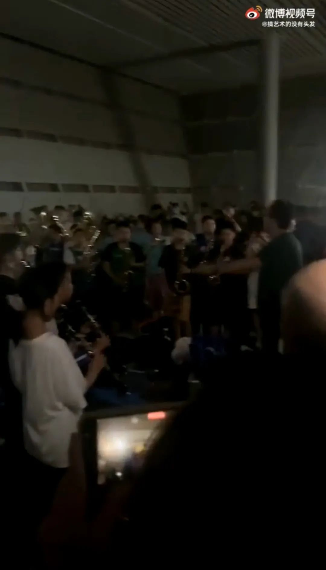 從上海比賽回來的管樂團,也被困在站內,一羣學生在老師的指揮下奏響樂器,騷動的人羣擁有了片刻的寧靜。