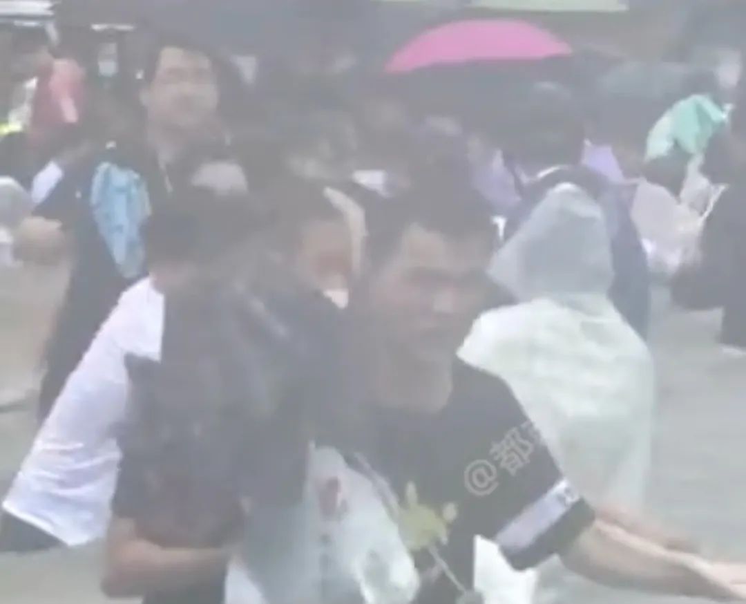 為了合力,人羣喊起了“一二,加油”的口號。雨很大,但旁邊的加油聲,更大。