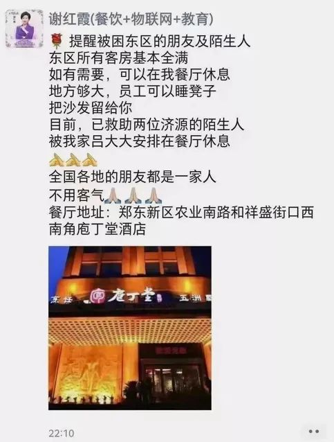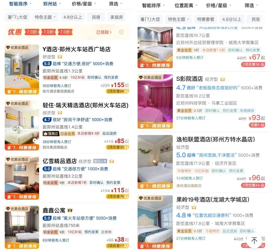 特大暴雨後,考慮到很多人會困在路上、無家可歸,鄭州很多酒店都不約而同地降價了。