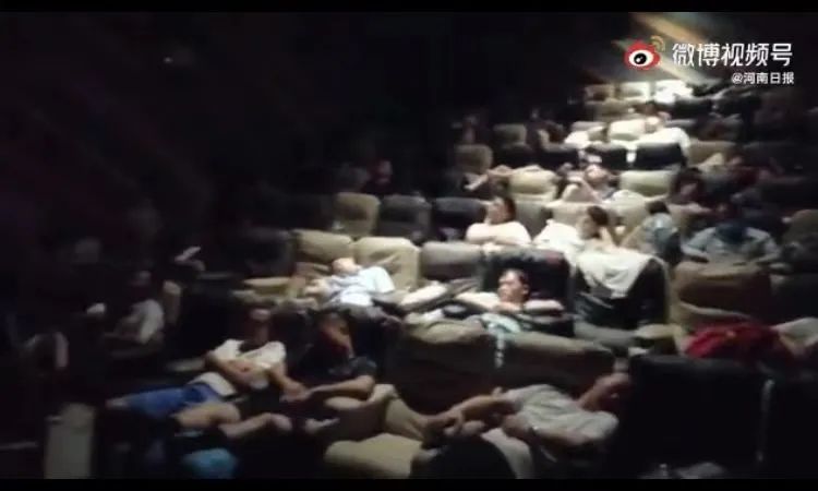 鄭州的一家愛心電影院甚至一晚上收留了上千名羣眾過夜,因為挨近商業圈,其中有不少老人、孕婦、孩子: