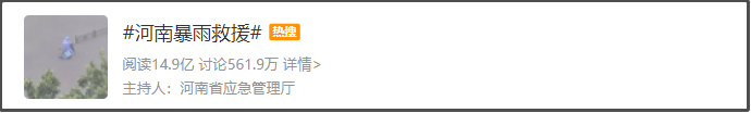#河南暴雨救援#閲讀量近15億,討論量達到560萬。