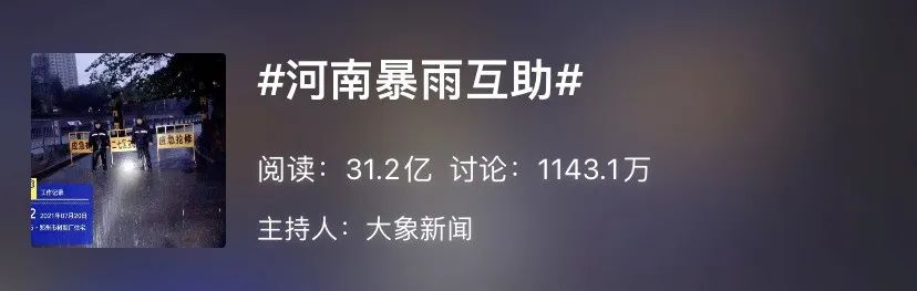#河南暴雨互助#的閲讀更是達到31.2億,討論超1000萬次。