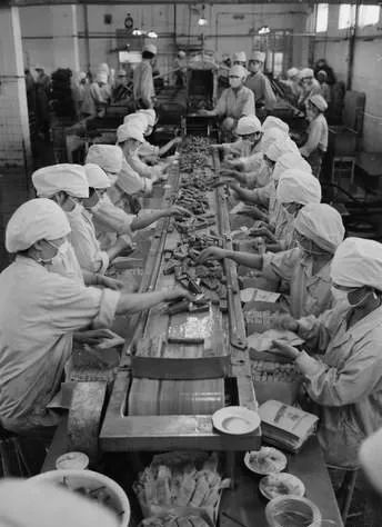 ▲1981年北京人民食品廠工人正在包裝冰棍