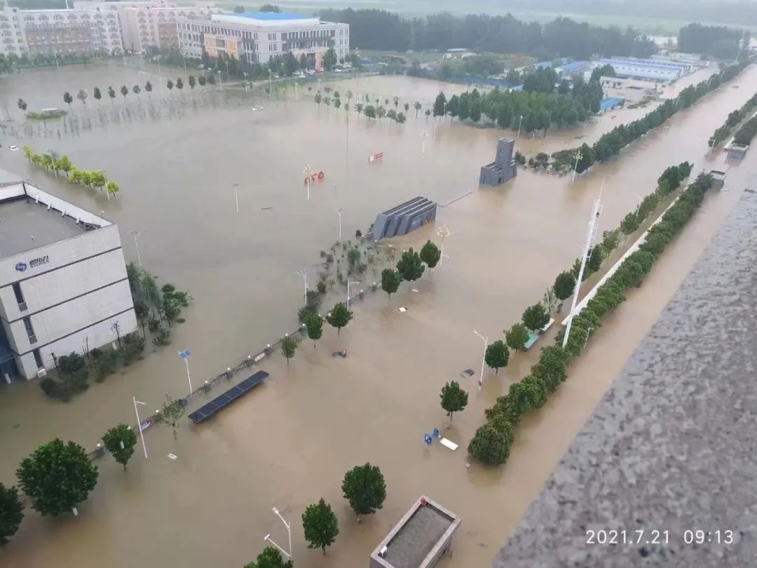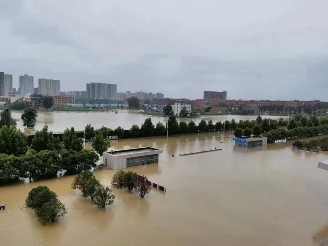 鄭州高新技術開發區唐門路附近被水淹沒的景象