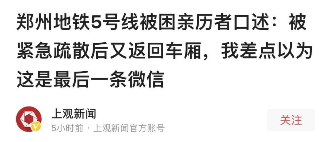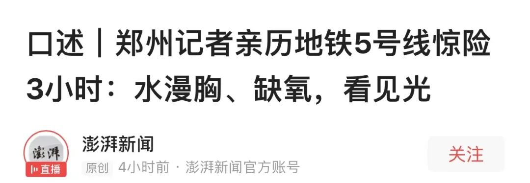 澎湃新聞:《逃過鄭州地鐵5號線險境的人》
