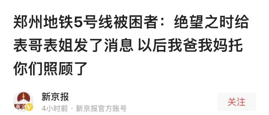 中國青年報:《鄭州地鐵5號線被困人員口述:車廂外水有一人多高,車廂內缺氧》