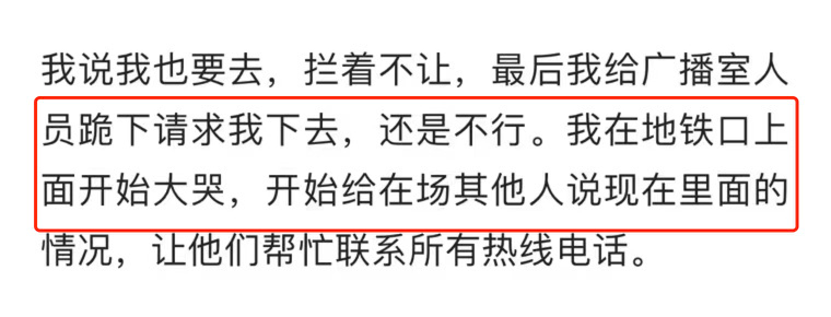 他心急如焚,在地鐵口大哭,跪着祈求工作人員放他進去救人。