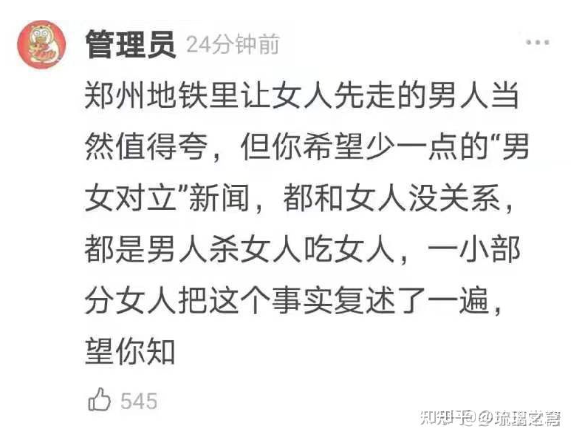 鄭州地鐵裏,救援人員來的時候,大家默契地讓孕婦,孩子先走,然後是女性,最後才是男性,在誰都不想死的這個時刻,人們仍然嚴守這樣一種對誰應當優先獲救的秩序的敬畏。小時候看《泰坦尼克號》,對裏面女士優先獲救的那個場面感動無比,因為那個場景,表現出了一個社會羣體被潛在預設的道德責任秩序,誰在保護誰,誰應該為誰犧牲。然而就是這樣一個在危難中體現中國人的人性高光時刻的場景,仍然有人對它被敍述出來感到不滿意而冷嘲熱諷。此種場景,跟當年連愛國都不準説的場景,何其相似。