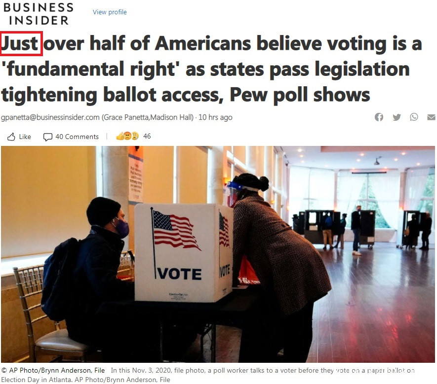 《商業內幕》:僅僅超過一半的美國人認為投票是一項“基本權利”,因為州立法機構通過了越來越多的法律來收緊投票權。