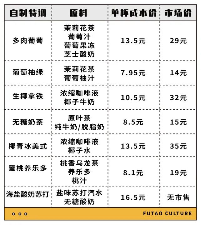 原料成本(可做1杯):鹽味蘇打汽水5元+無糖酸奶8.5元+中杯冰杯3元=16.5元