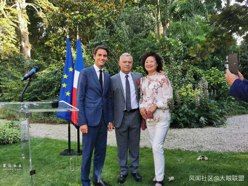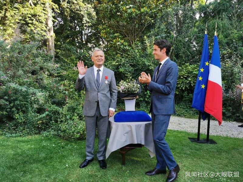 月20日晚,在位於巴黎7區格勒內爾街的法國政府發言人辦公地Hôtel de Rothelin-Charolais,政府發言人加布裏埃爾·阿塔爾(Gabriel Attal)為有38年“工齡”的企業顧問和商業調解員巴偉(Jean-René PAVET )先生頒發榮譽軍團騎士勳章。