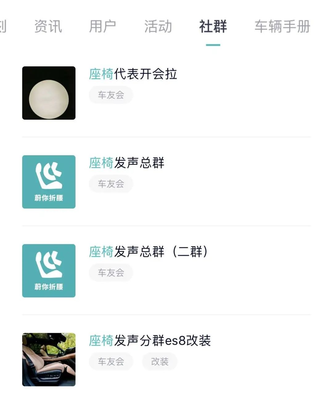 座椅發聲羣還在壯大。這些樂於改裝的車主,在蔚來APP裏成立了一個座椅發聲分羣,比如ES8改裝羣,羣人數已經達到139人。