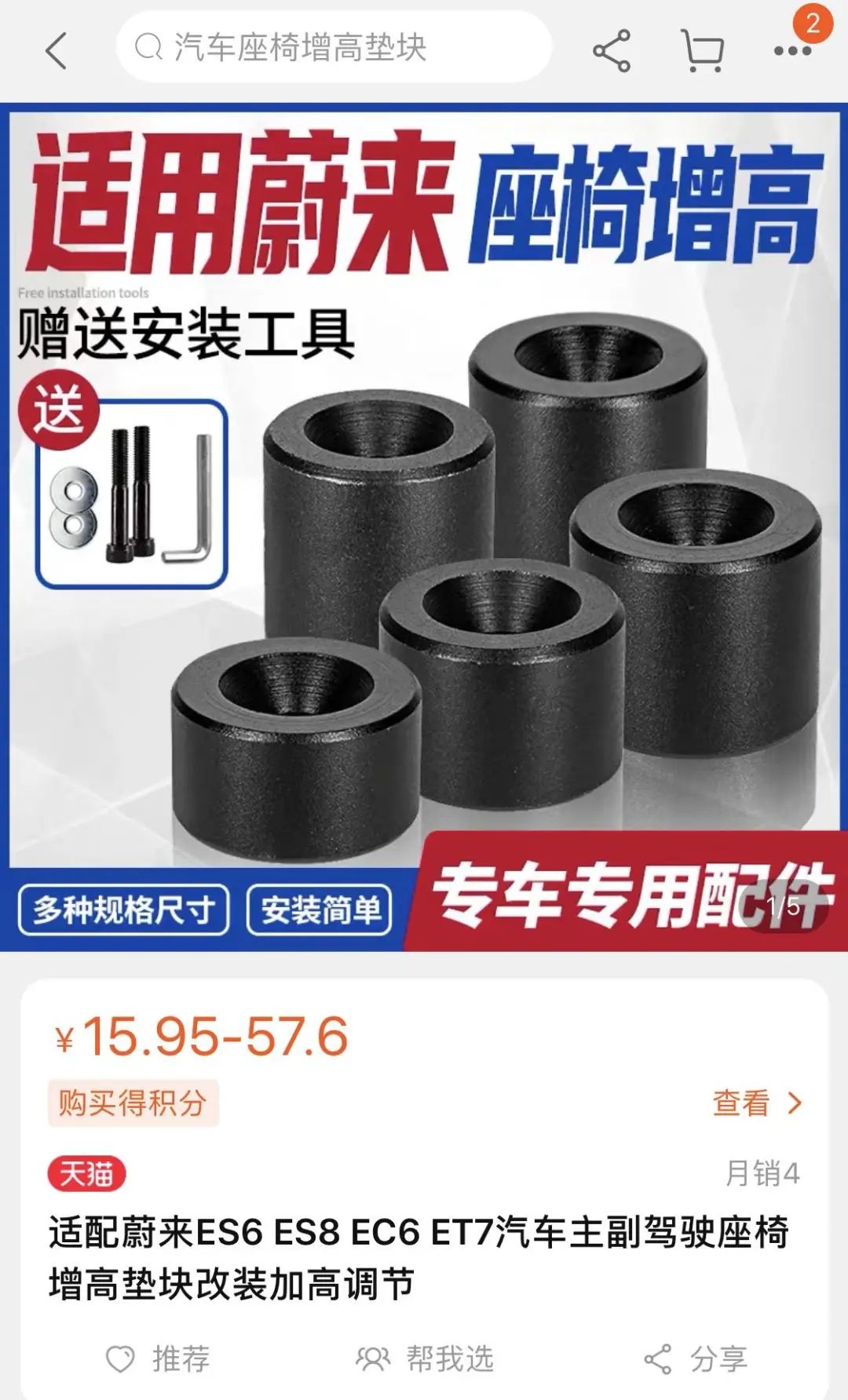 哪裏有需求,哪裏就有市場。在淘寶上,竟然有商家開賣座椅增高墊,山寨味濃厚的封面圖上,特意大紅字提醒:“適用蔚來”、“專車專用配件”。