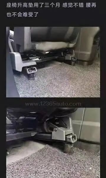 比如前排主駕座椅,不是前高後低角度太大嘛,解決方法很直接——在座椅底部加增高墊。