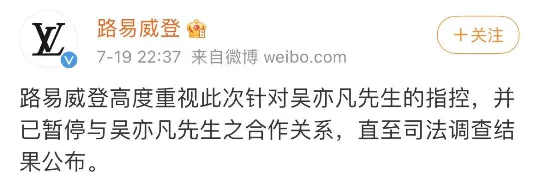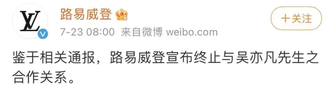 警方調查結果出來後,LV立刻解約了,至此,吳亦凡商業價值徹底空了。