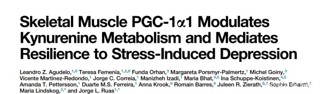 Skeletal Muscle PGC-1a1 Modulates Kynurenine Metabolism and Mediates Resilience to Stress-Induced Depression.https://doi.org/10.1016/j.cell.2014.07.051
