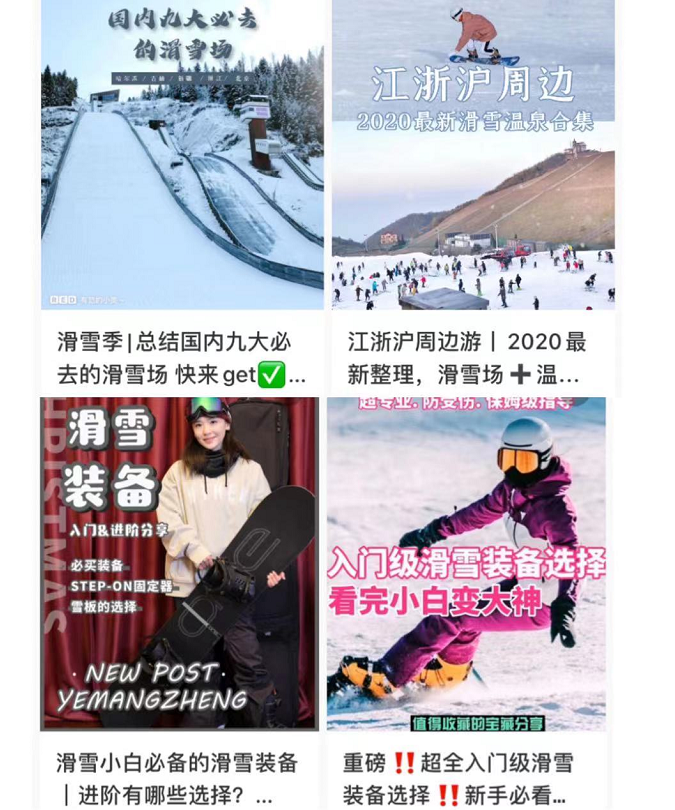 翻開小紅書,你得到的不僅僅是一節滑雪入門課,而是包括滑雪場、酒店、裝備、當地美食、運動技巧等在內的一整套攻略。