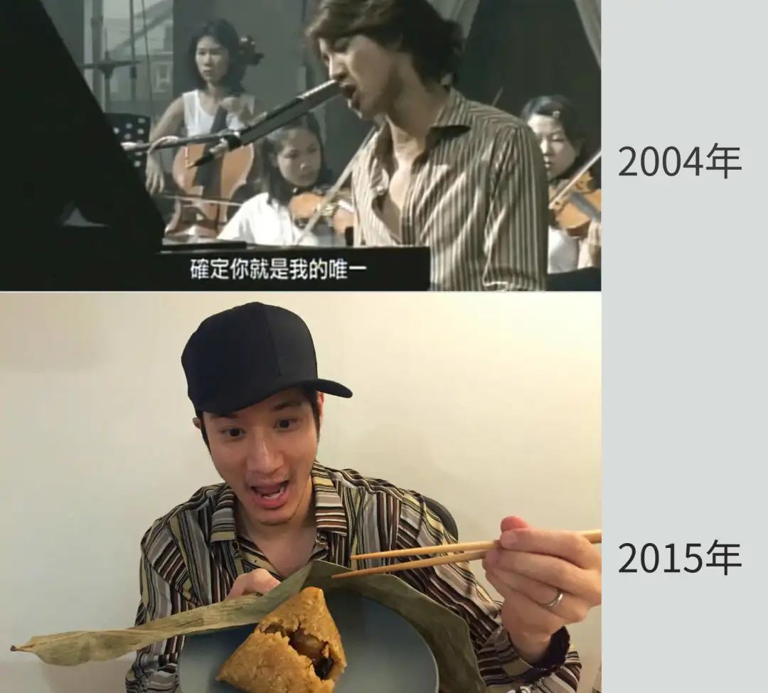 網友發現,2015年王力宏微博照片裏的條紋襯衫,居然是10年前錄《唯一》MV那件。