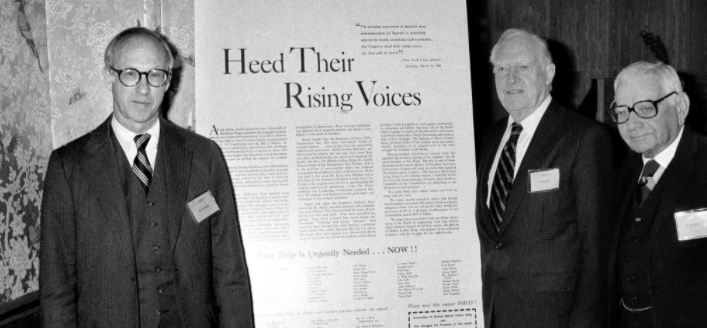1984年,當事律師W. 羅格斯(中)和H.韋斯勒(右)