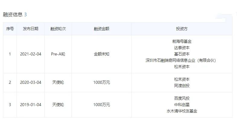 在資金方面,2019年1月,公司完成天使輪融資,融資估值達數億元人民幣;2020年3月,完成新一輪數千萬元融資,由松禾資本領投,同渡資本跟投。