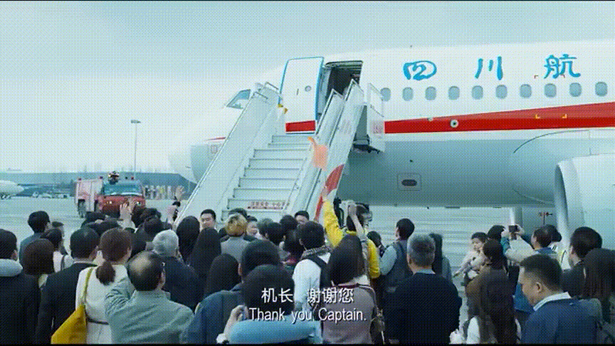 電影裏也有個飛機迫降成功後,機長走出機艙的鏡頭: