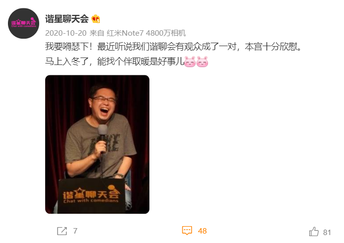 在第一次關於《諧星聊天會》的策劃會上,單立人喜劇的創始人石老闆提出了一個原則,“想教別人點兒什麼的那種音頻太多了,我們就做一個,讓大家沒有任何負擔的播客節目。如果你能在我們這兒學到點兒啥,就算我們輸了。”