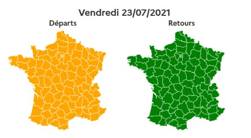 Bison Futé預測,週末法國的道路可能會再次變得非常繁忙。從 7 月 23 日星期五開始,出發方向被歸類為橙色,但返回方向將保持綠色。