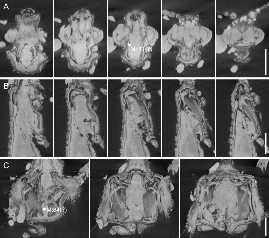 圖4 薄脊副齒邊眼甲(Paraodontomma leptocristatum),顯微CT切面,示立體保存的肌肉組織
