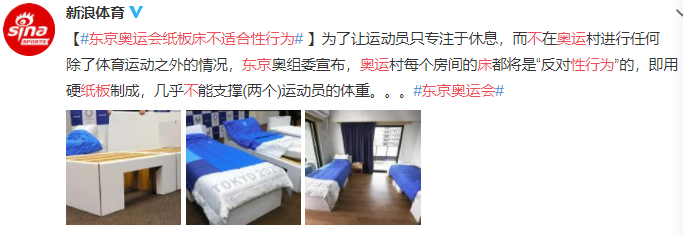 奧運村每個房間的牀都將是“反對性行為”的,它們由硬紙板製成,幾乎不能支撐(兩個)運動員的體重。