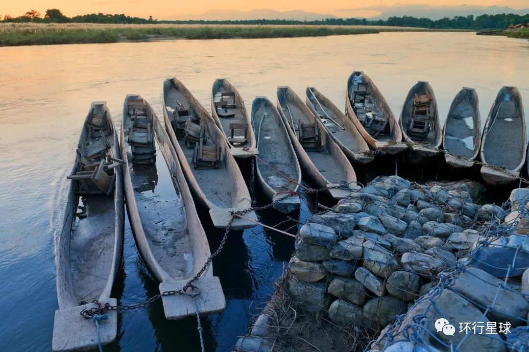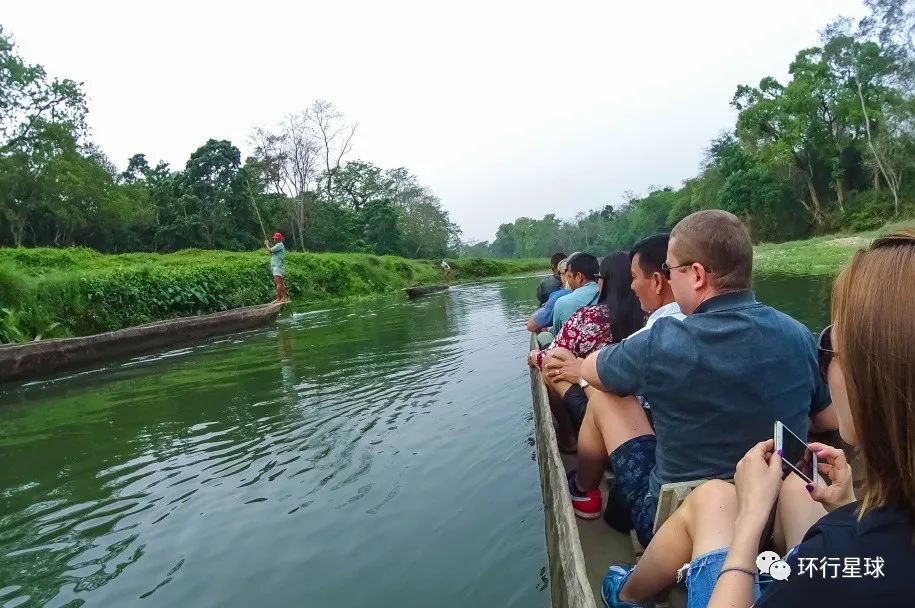 嚮導是位熱情的尼泊爾青年,説着流利又難懂的英語。他招呼我們上了簡陋的獨木舟,並不斷強調:“千萬別把手伸入水中!” 接着告訴我們,前幾年有個德國女人把手伸進水裏逗鱷魚,結果被咬掉半條手臂。