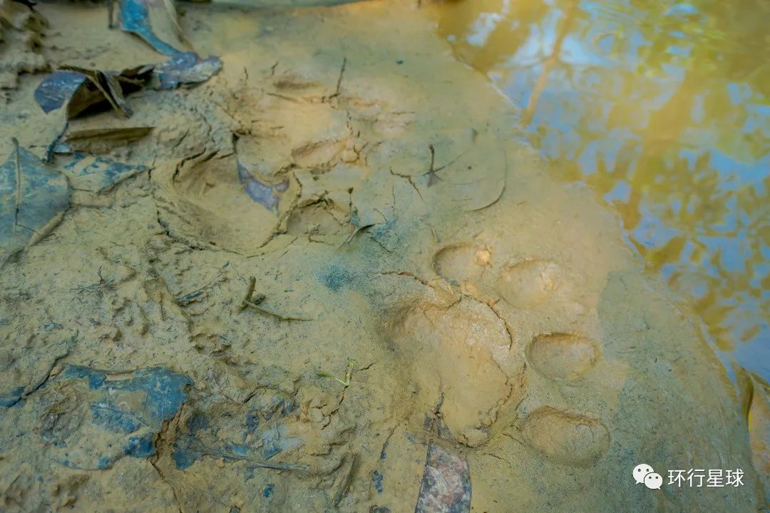 我們頓時脊背發涼,一陣後怕,嚮導指着潮濕地面上的一些爪印,説那就是老虎的腳印。