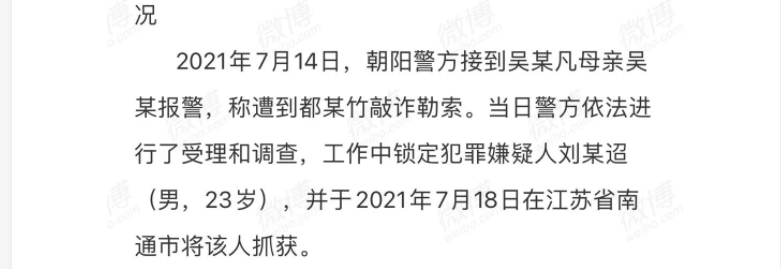吳亦凡母親也確實報警,表示遭到都美竹敲詐勒索。