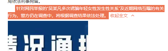 最後,警方還表示還在繼續調查吳亦凡有沒有誘騙年輕女性發生性關係。