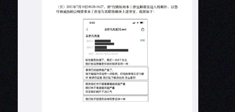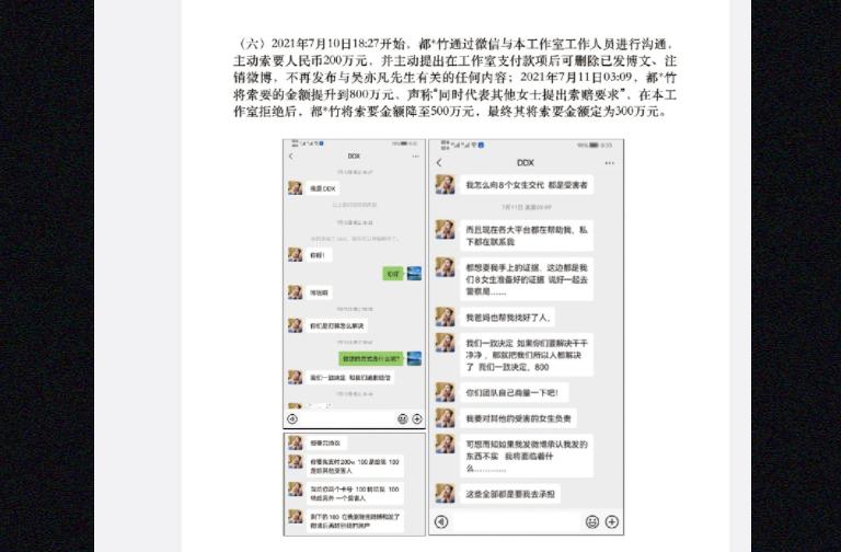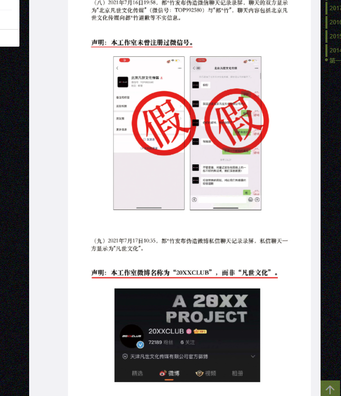 4,吳亦凡工作室放出了不少實錘,指出都美竹方放出的聊天紀錄截圖是偽造的,他們並沒有這樣一個微博號和微信號。