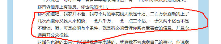 還有一些人,説她自稱“零花錢10萬”,是在炫富,和網友不是一個階層的。還有人錘她,説她根本沒這麼多錢,是在裝富、