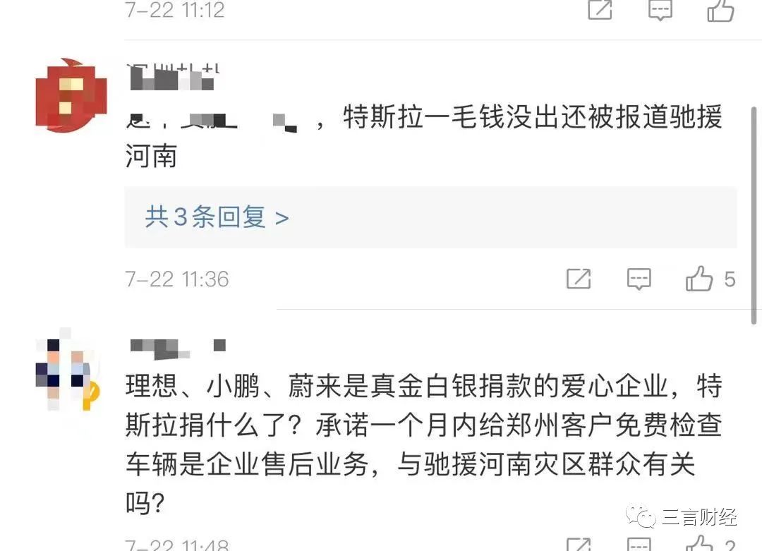 然而,特斯拉這個行為不僅沒提升企業形象,反而更加“招罵”。有網友直言,特斯拉一分錢沒捐,還要宣傳“馳援”;還有人則表揚了理想、小鵬和蔚來等國產新能源品牌,同時指出特斯拉承諾的免費服務僅僅是企業售後,根本和救災無關。