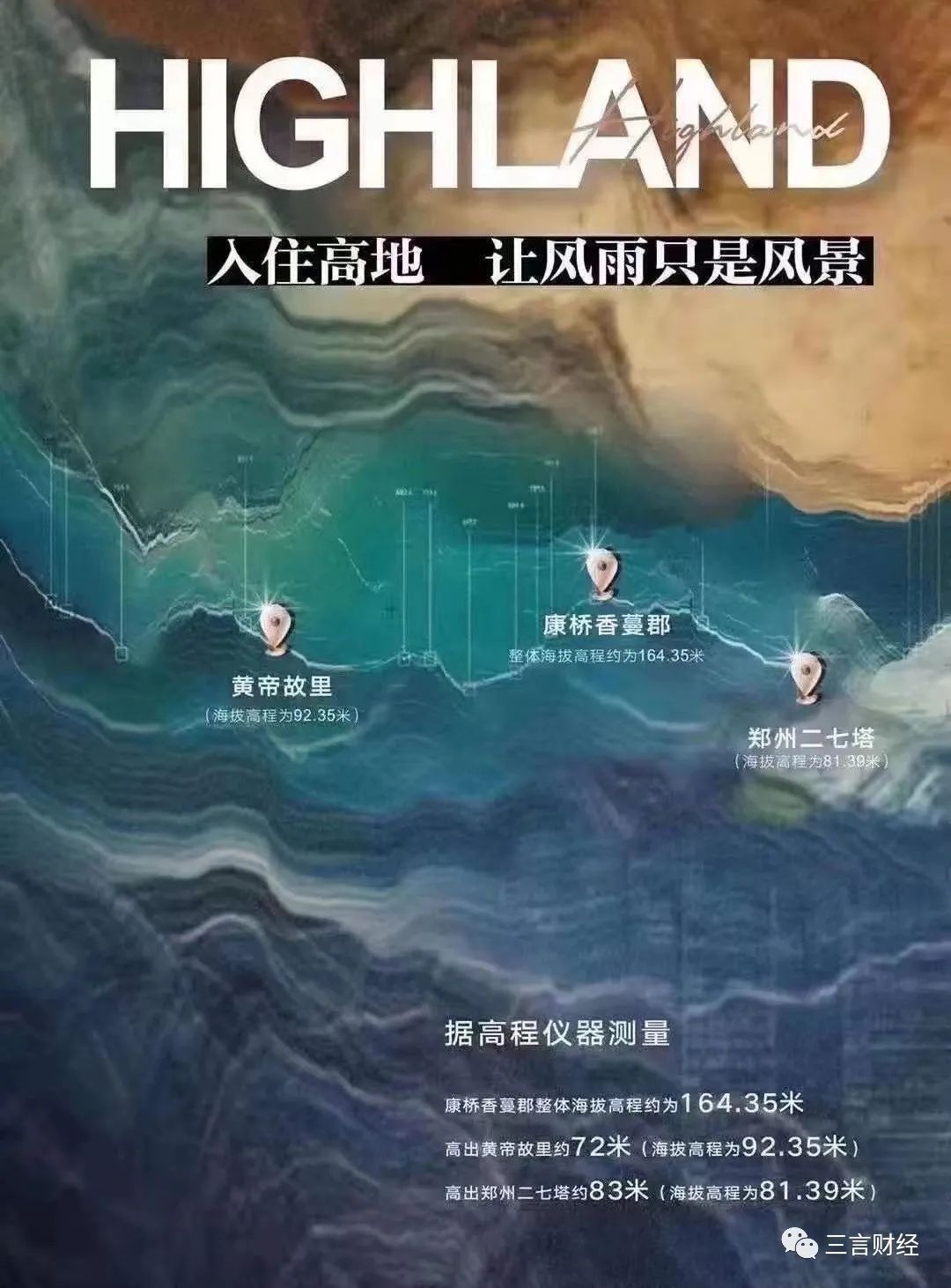 鄭州市下暴雨當日,有部分當地房地產公司利用此事宣傳自己,在海報中醒目位置寫着“入住高地,讓風雨只是風景”,又在下方標明房源所處地區地勢高度。