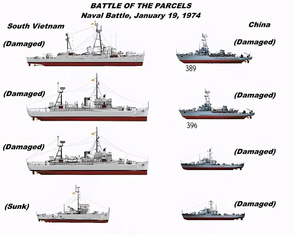 ▲西沙海戰中,敵我軍艦對比