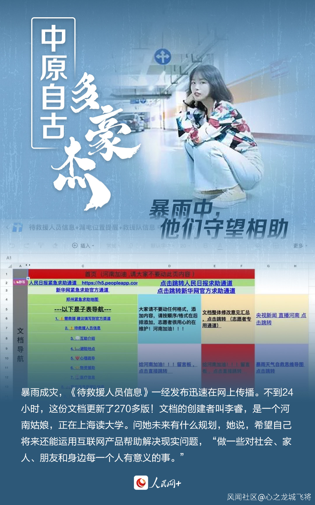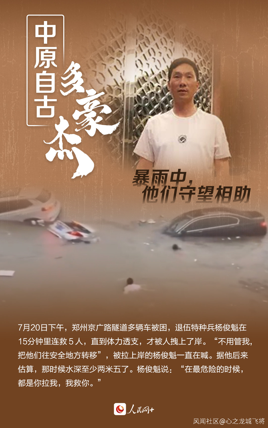 中原自古多豪傑!暴雨中,他們守望相助來源:“人民網+”客户端