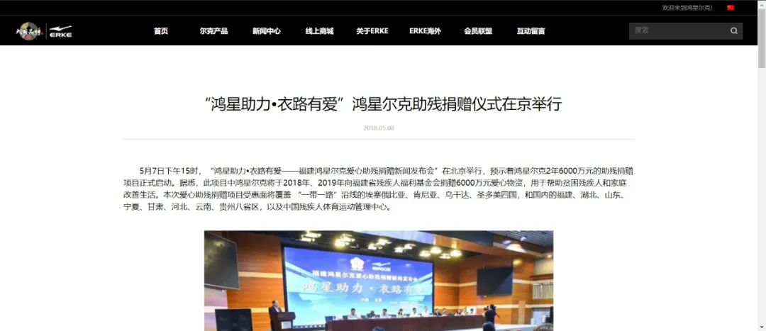 網友整理信息顯示,2020年7月,鴻星爾克在20週年慶典上宣佈捐贈1億元物資用於扶貧助殘;新冠疫情爆發後,鴻星爾克攜手壹基金向疫區捐贈價值1000萬元的防疫物;2018年5月,鴻星爾克面向殘疾人事業展開以“鴻星助力•衣路有愛”為主題的6000萬元助殘捐贈項目;2013年,鴻星爾克與福建省殘聯基金會攜手,先後捐贈了超過2500萬元的愛心物資。