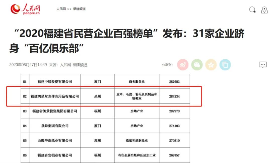 據福建省工商聯發佈的“2020福建省民營企業百強榜單”,2020年鴻星爾克的營收為28.43億元,僅為特步的三分之一(81.72億元),不及安踏(355.1億元)、李寧(144.57億元)的零頭。