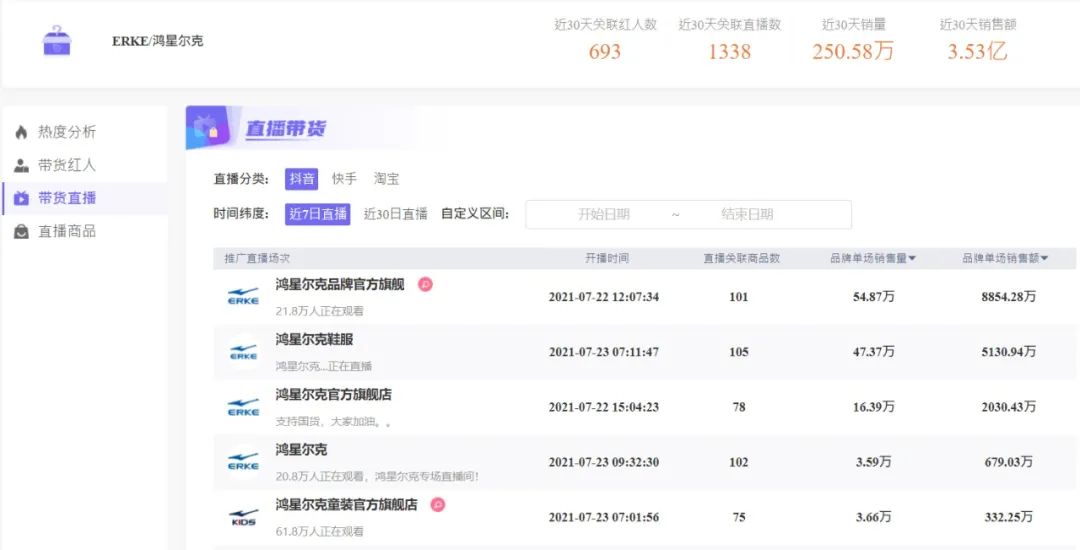 (鴻星爾克品牌官方旗艦近7天的直播表現堪稱“喜馬拉雅平地而起”)