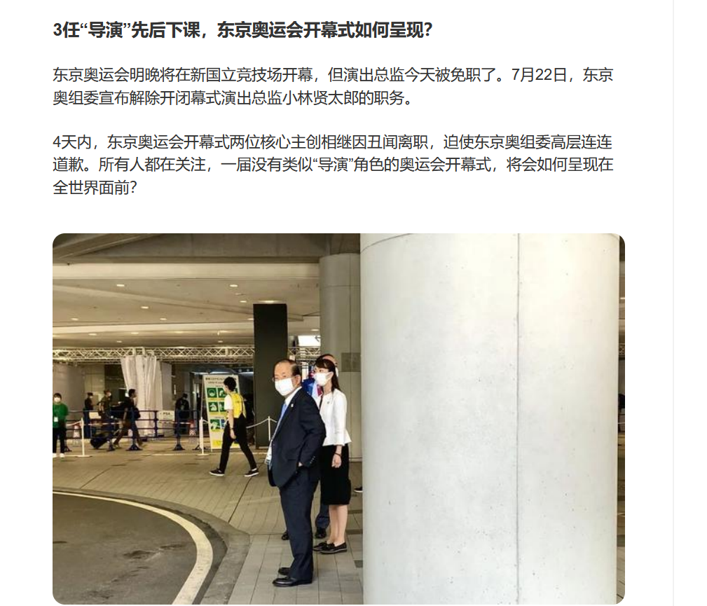 你不能指望一個從設計總監,音樂總監,總導演都先後爆出問題,陸續滾蛋,最後財務自殺,執行主席跑路,一路醜聞不斷,一切靠臨時拉人頂崗來維持的巨型活動還能順利舉辦。東京奧運的拉胯是有一切預兆的,從人事的混亂,到物資的混亂。